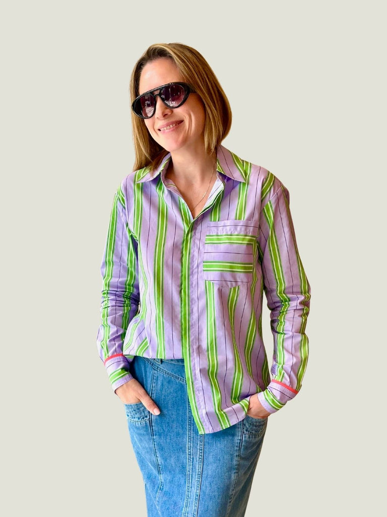 Simone Maxi Pleat Skirt - Red/Pink Stripe