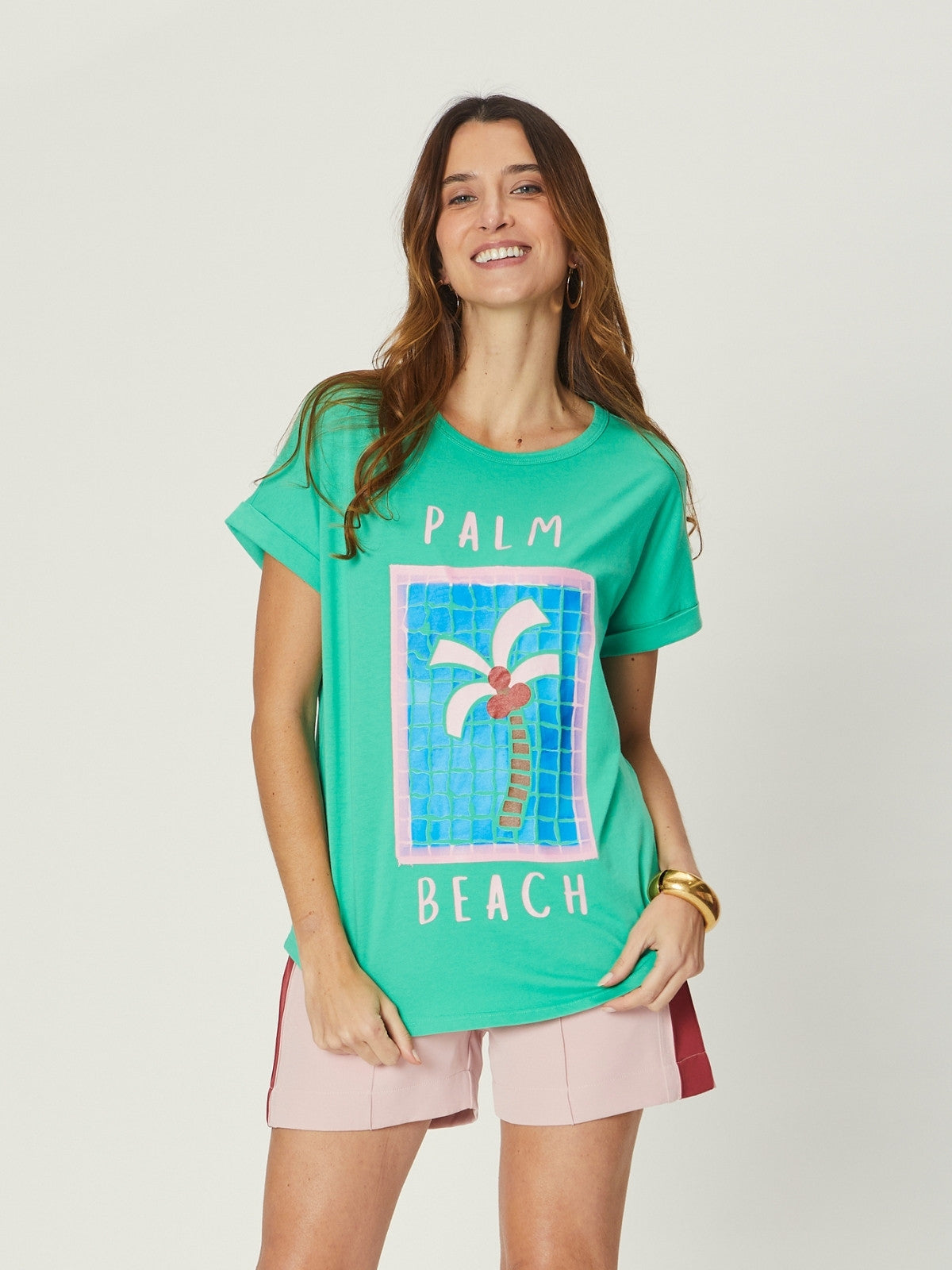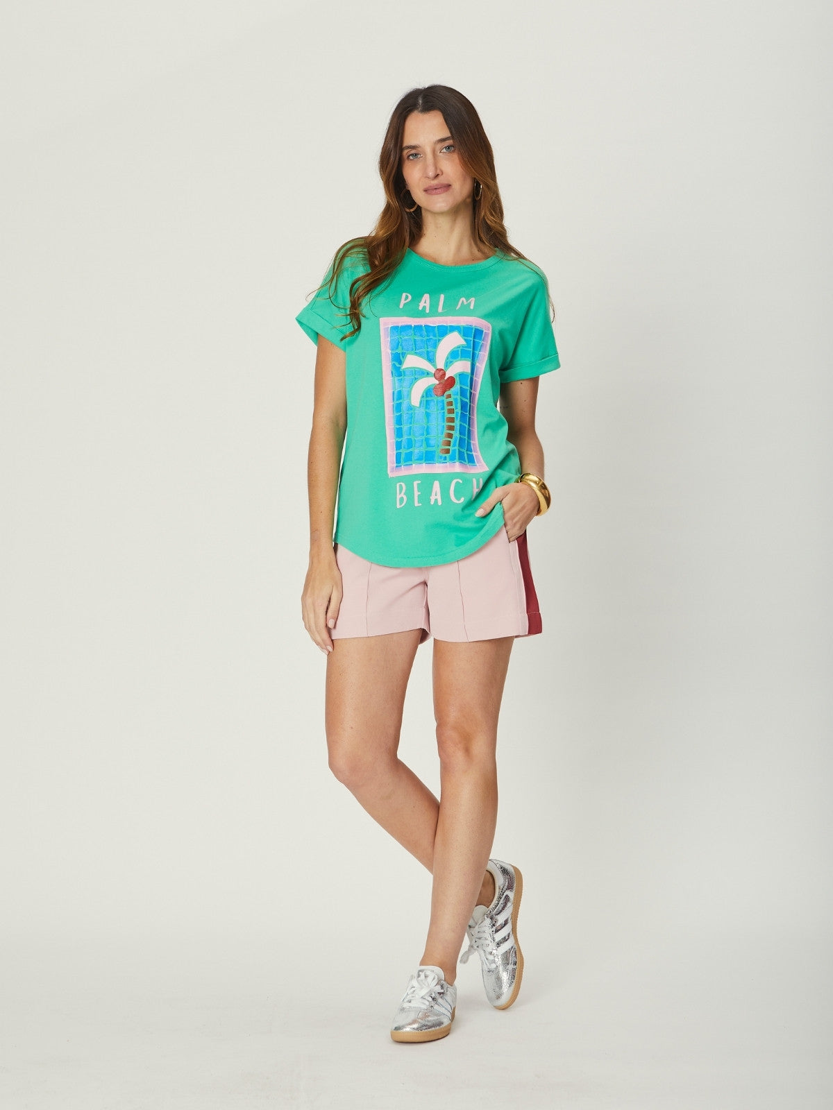 Our Jade Relaxed Tee is a relaxed summer staple designed for easy, laid-back dressing. Featuring a palm tree print and fresh green base, it brings a holiday-ready feel to casual looks. The loose silhouette and rolled sleeves keep it comfortable and versatile — perfect for styling with light pants or shorts for sunny days and weekend plans.